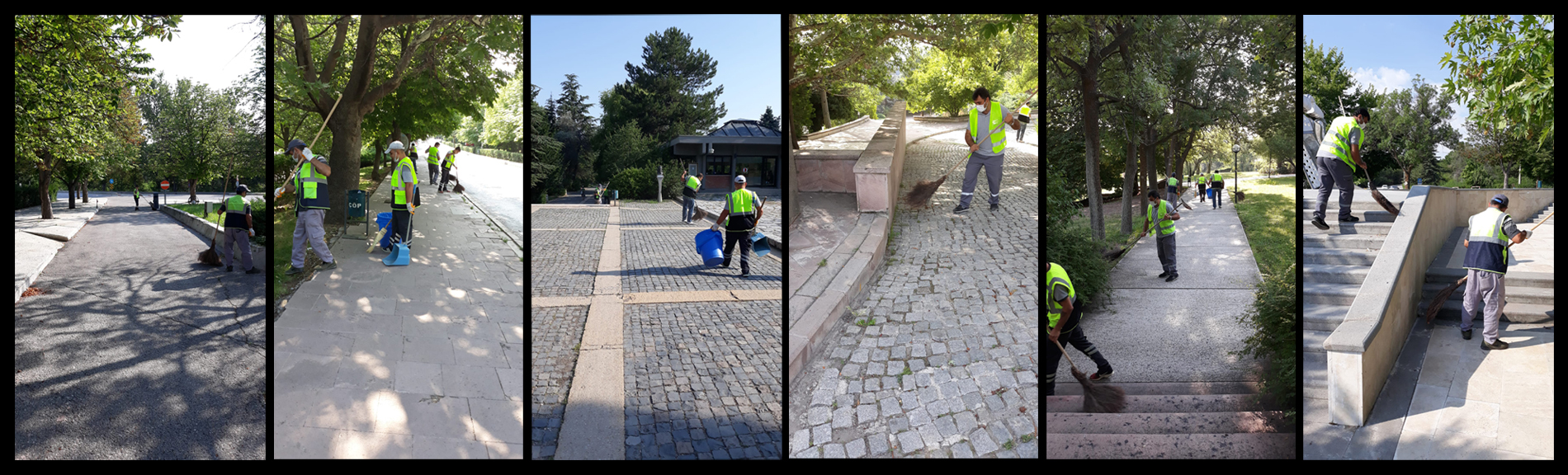 • A1 kapısına kadar uzanan yürüyüş yolu ve kaldırımları ile A1 Kapısı çevresini süpürerek temizliğini yapar.